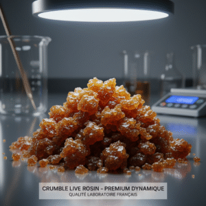Crumble Live Rosin – Résine émiettée avec un taux exceptionnel de 91% de CBD. Le concentré le plus puissant de notre gamme premium.