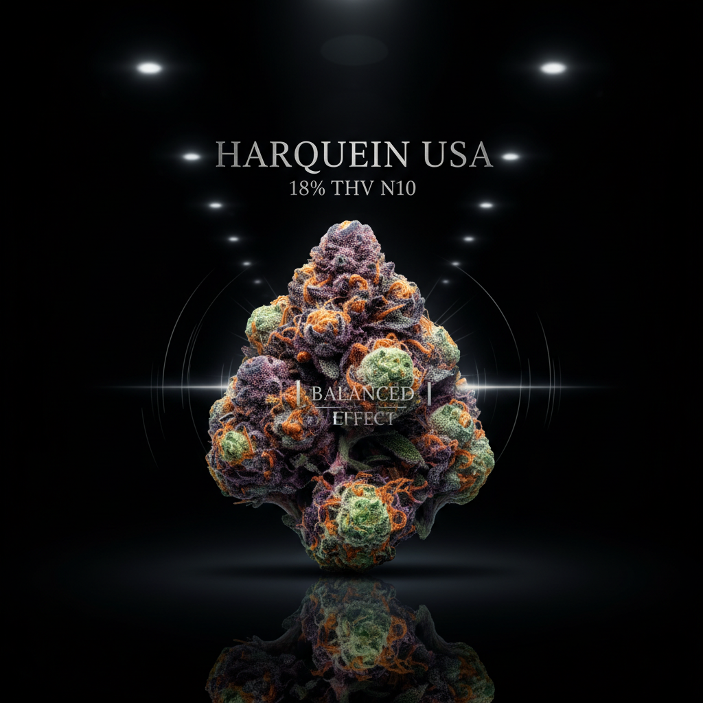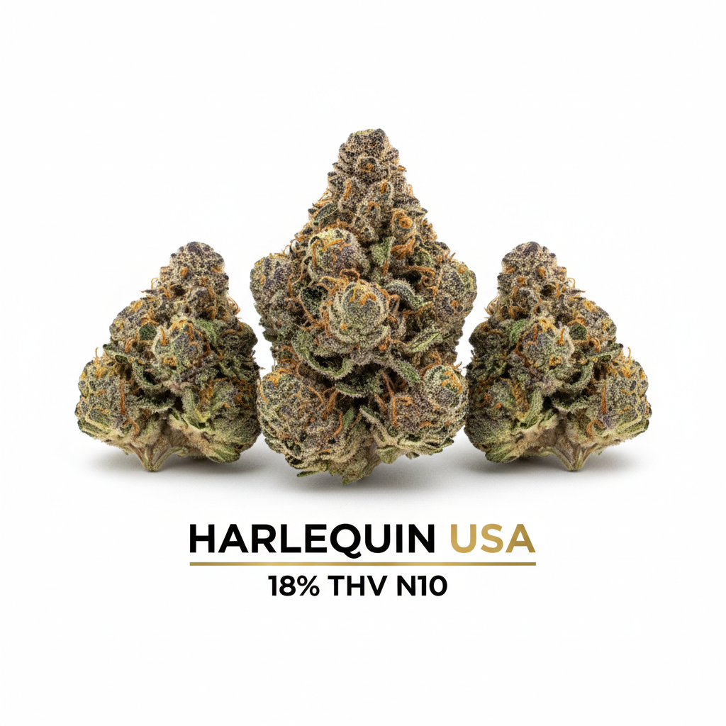 Harlequin USA – Variété américaine équilibrée avec 18% de THV N10. Découvrez l’harmonie parfaite de cette génétique légendaire, légale en France.