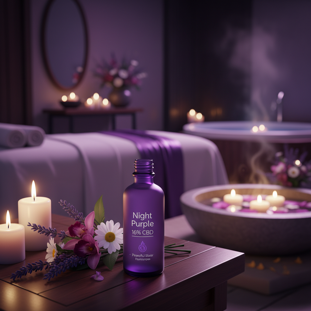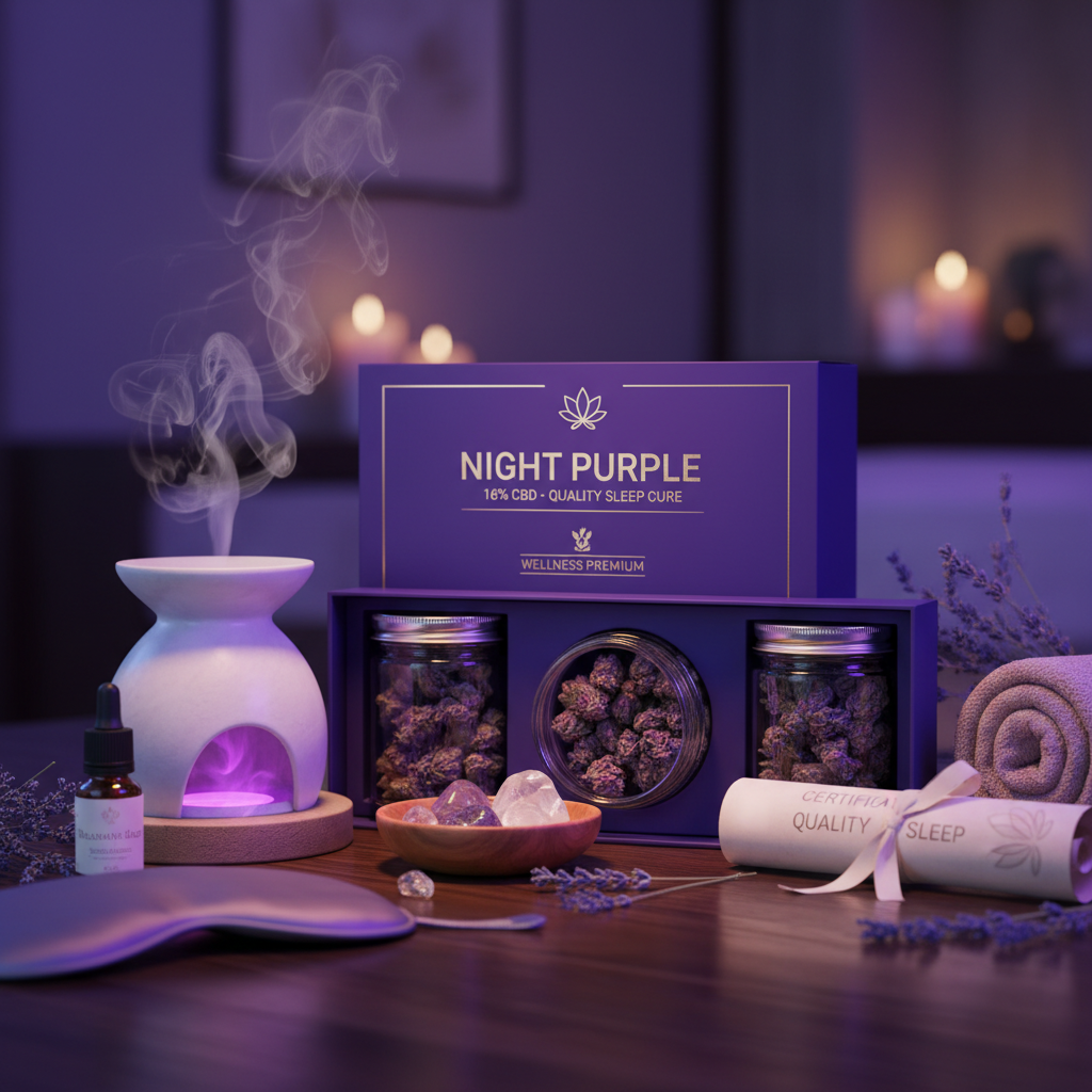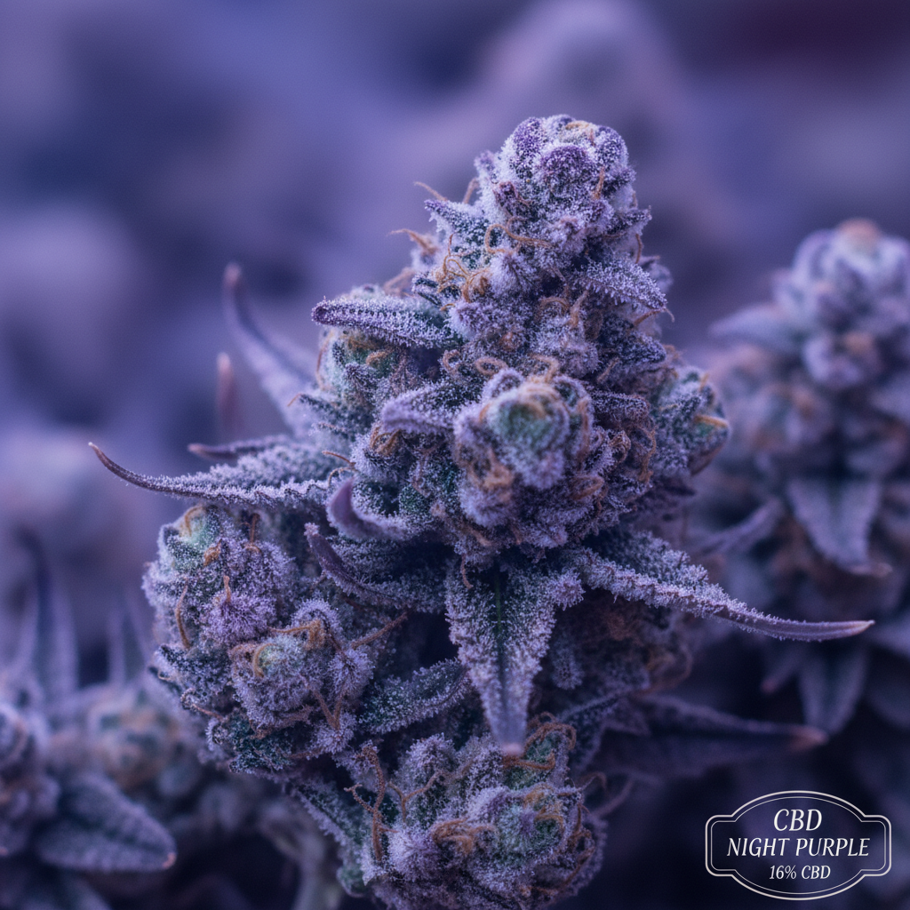 Night Purple – Hydro boisée spécialement conçue pour la détente nocturne avec 16% de CBD. Arômes boisés apaisants pour un repos optimal.