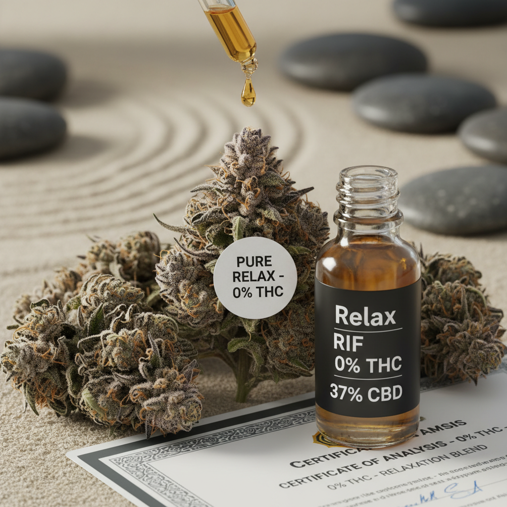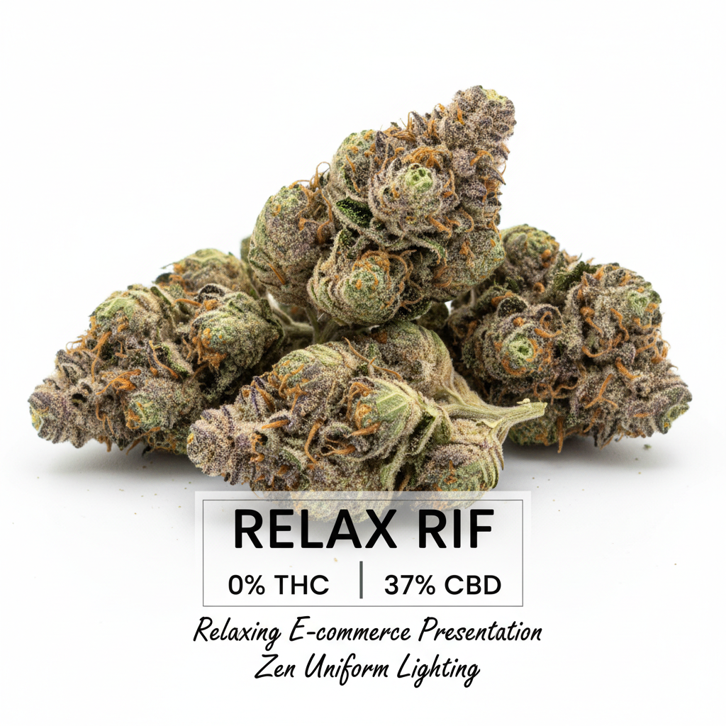 Relax RIF – Variété spécialement conçue pour la relaxation, garantie 0% THC avec 37% de CBD. Détente maximale en toute sérénité.