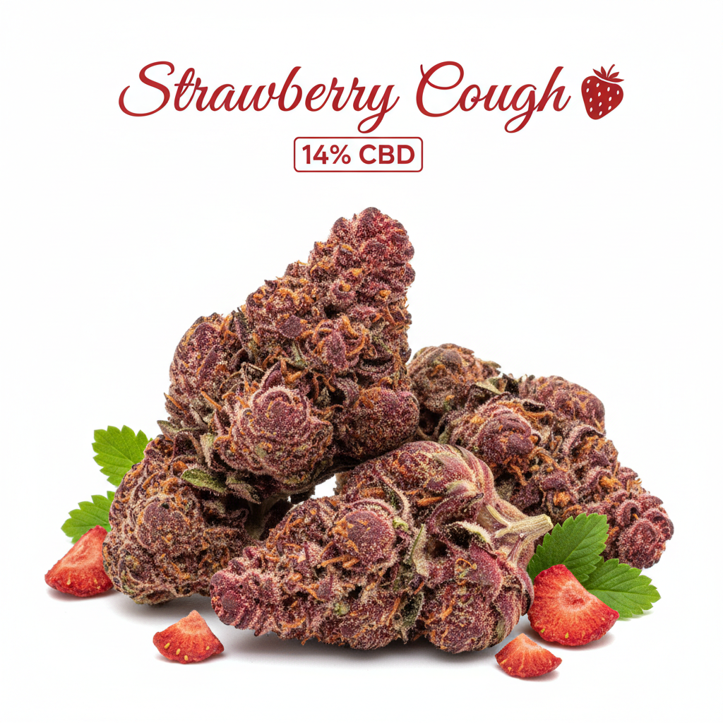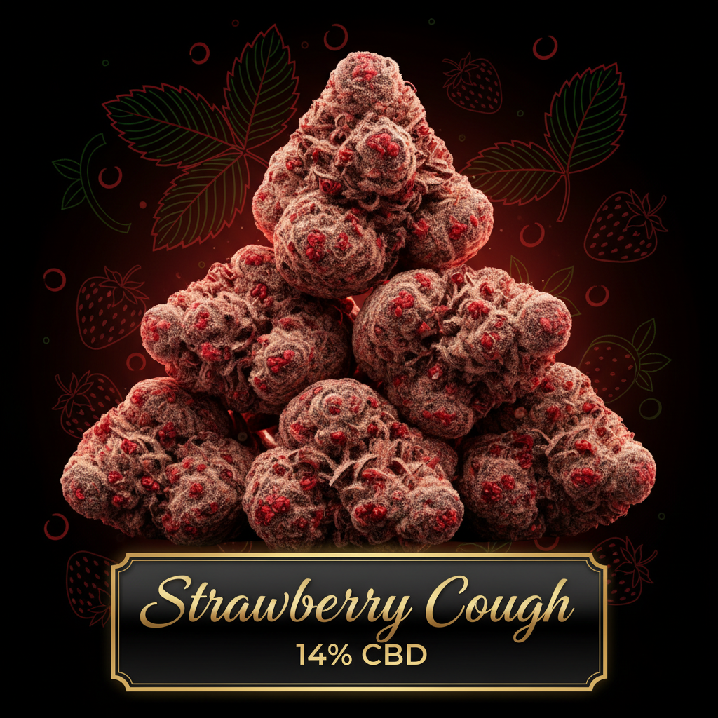 Strawberry Cough – Hydro fruitée aux saveurs authentiques de fraise avec 14% de CBD. Une expérience gourmande et relaxante.